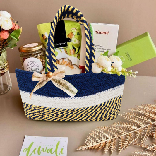 Handwoven Basket - Blue & Gold Accent