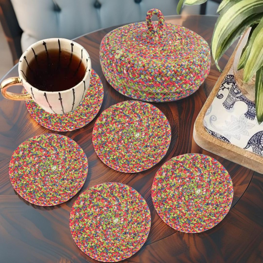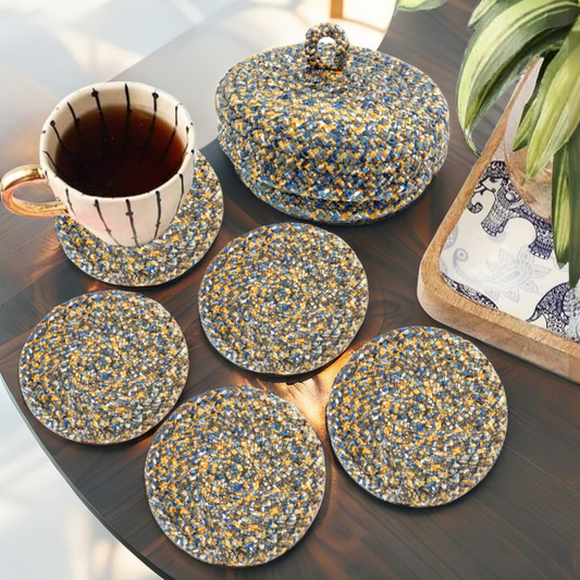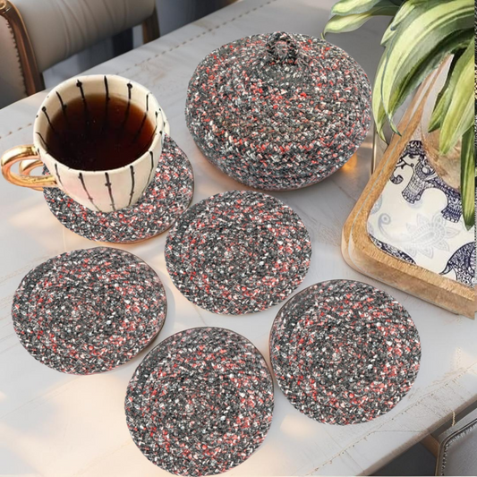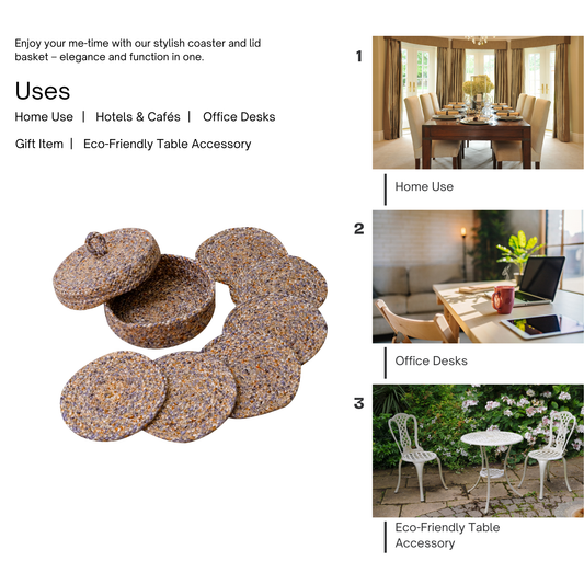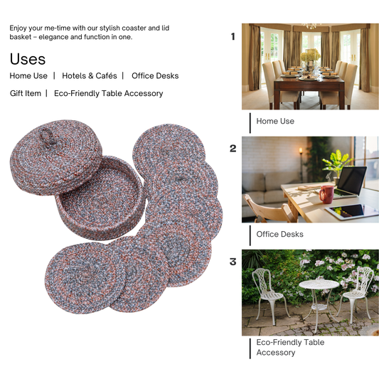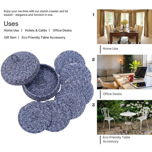 Coaster Set with Lid Basket - CHARCOAL GREY