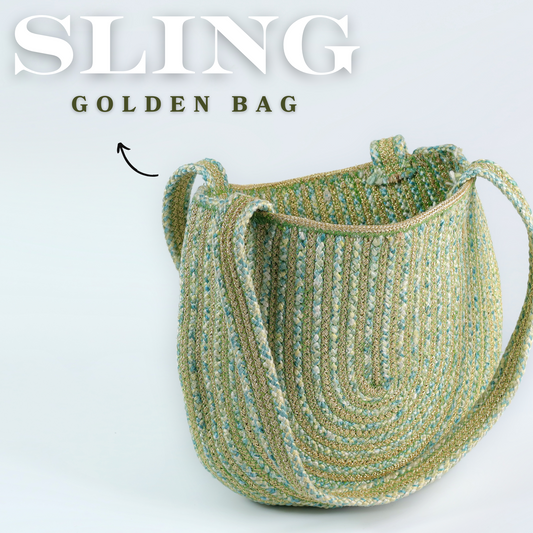 Golden Sling Bag – Shine Bright with Elegant Pastel Green & Gold Weave